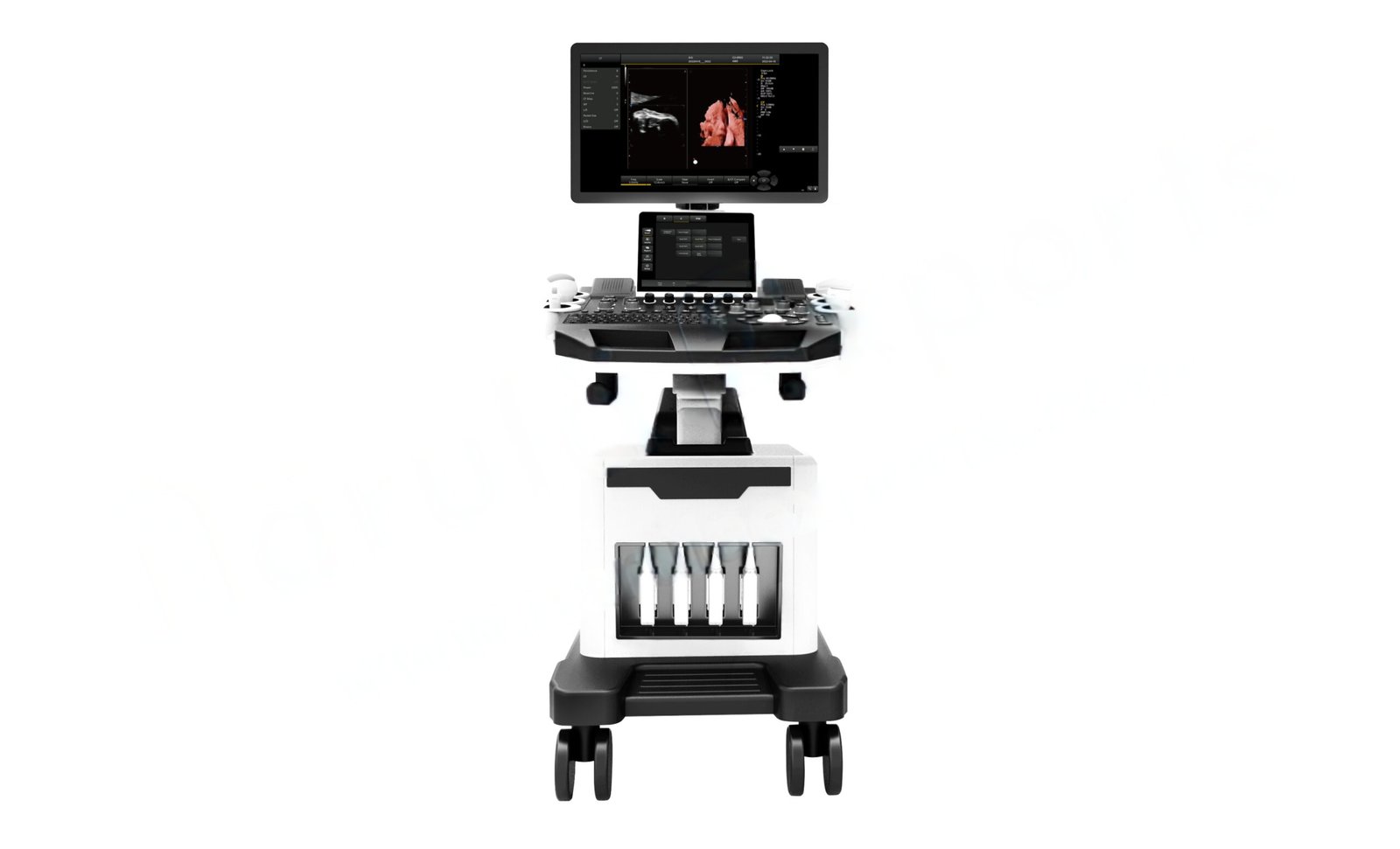 • Main screen is 21.5-inch and auxiliary screen is 10.4-inch medical ultrasonic touch screen, to meet the needs of doctors from different angles.